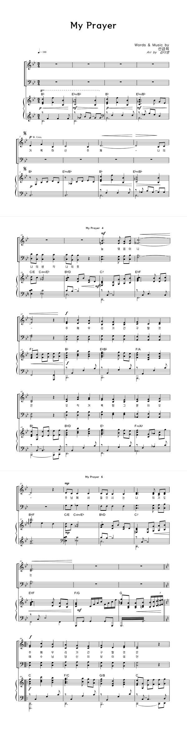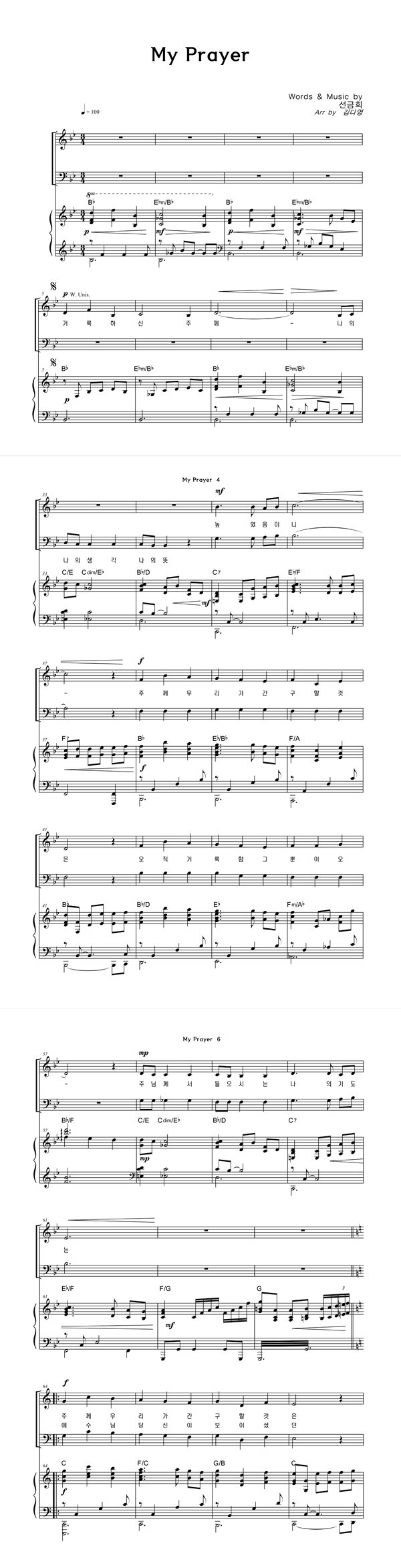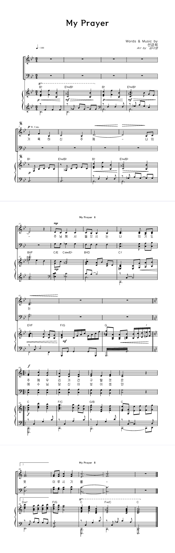 | My Prayer | 성가 3부 + 피아노 반주 |