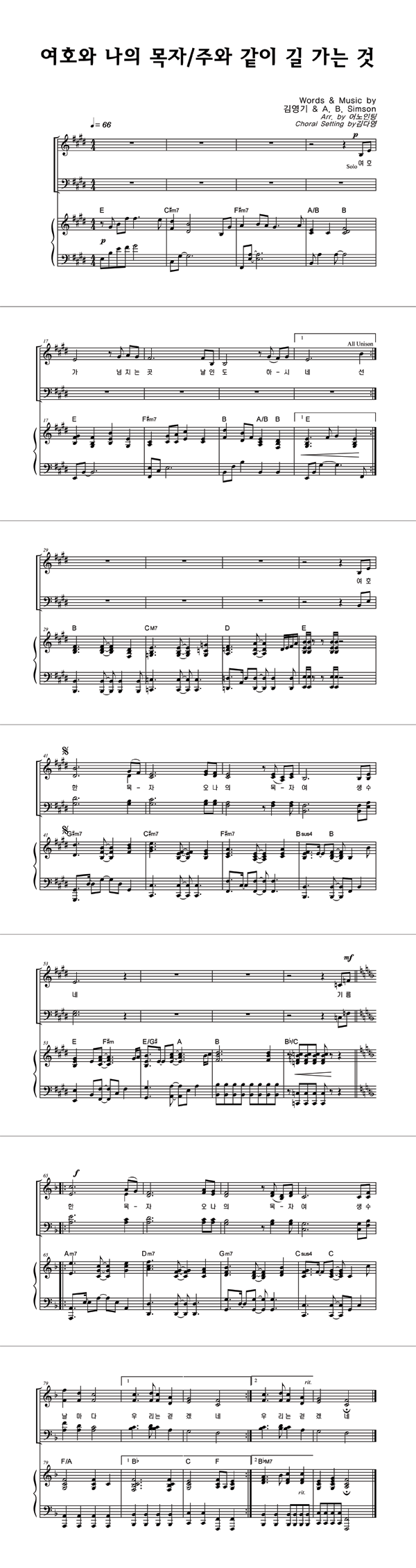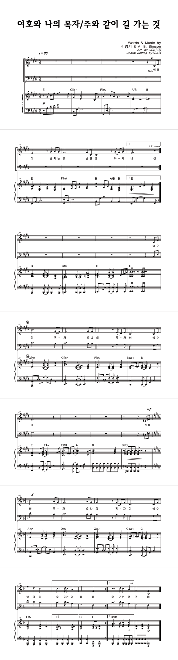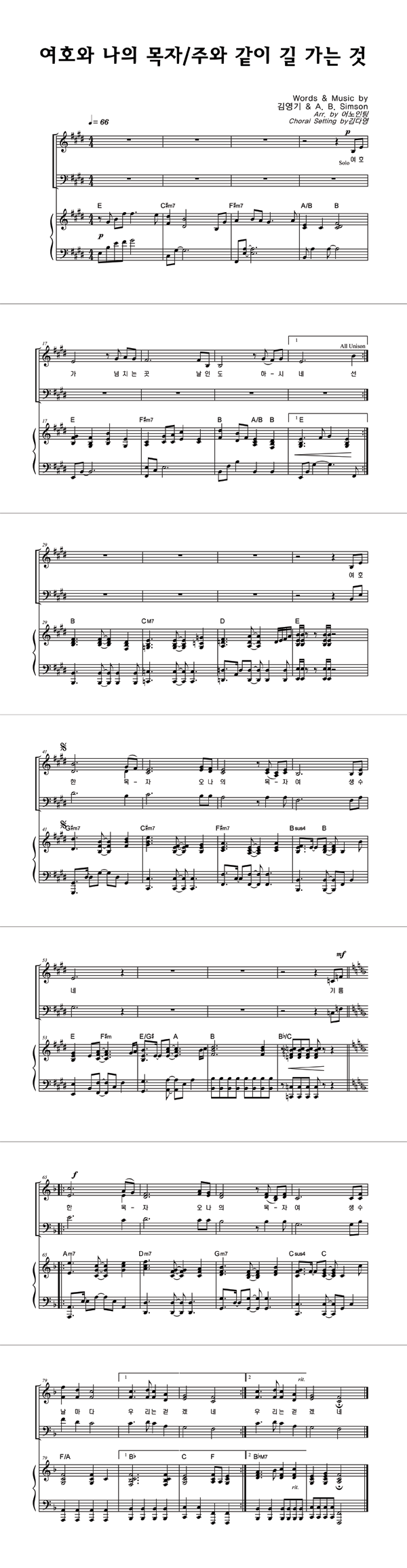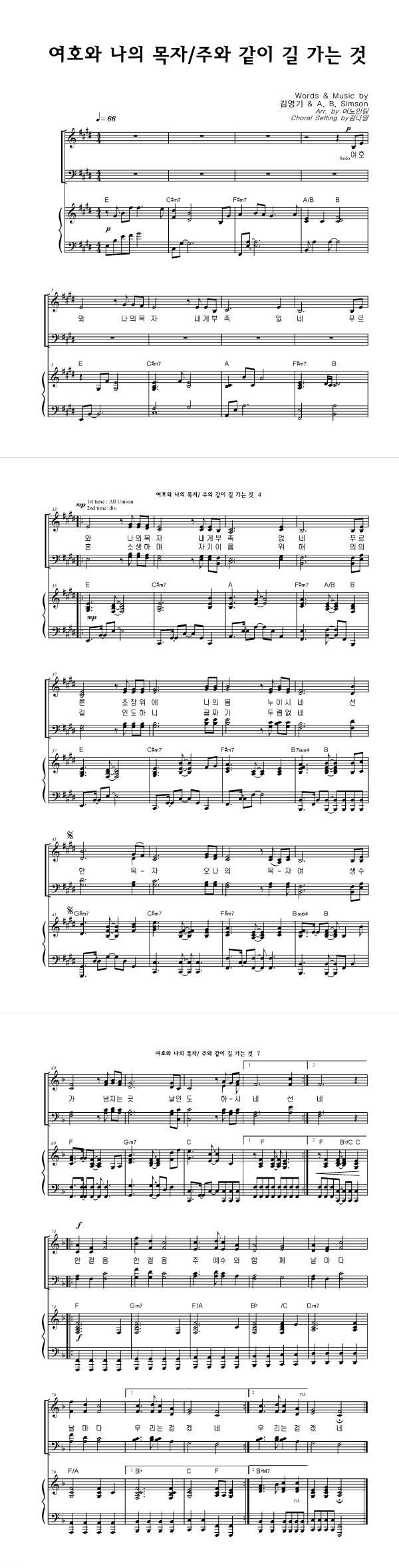 | 여호와 나의 목자 / 주와 같이 길 가는 것 | 성가 4부 + 피아노 반주 |