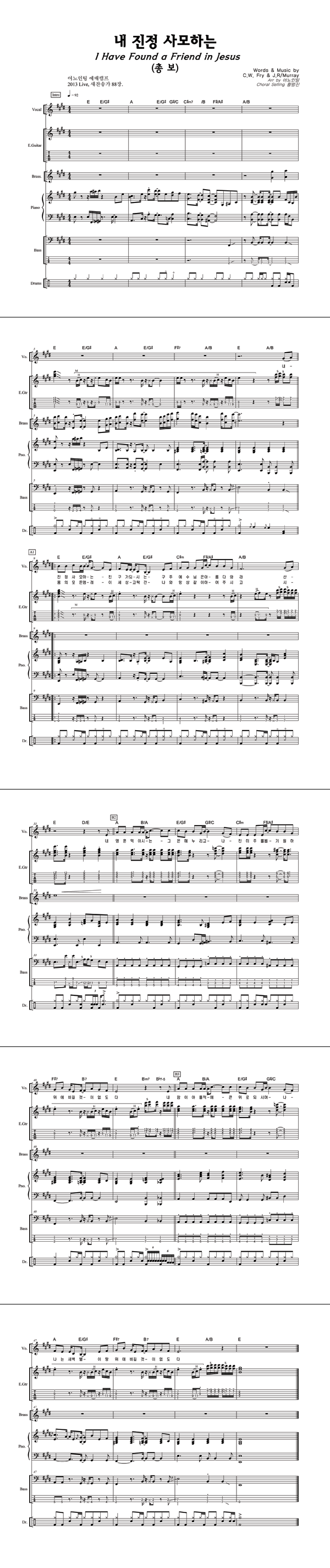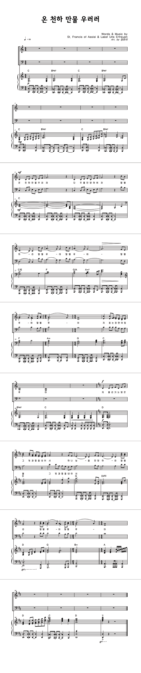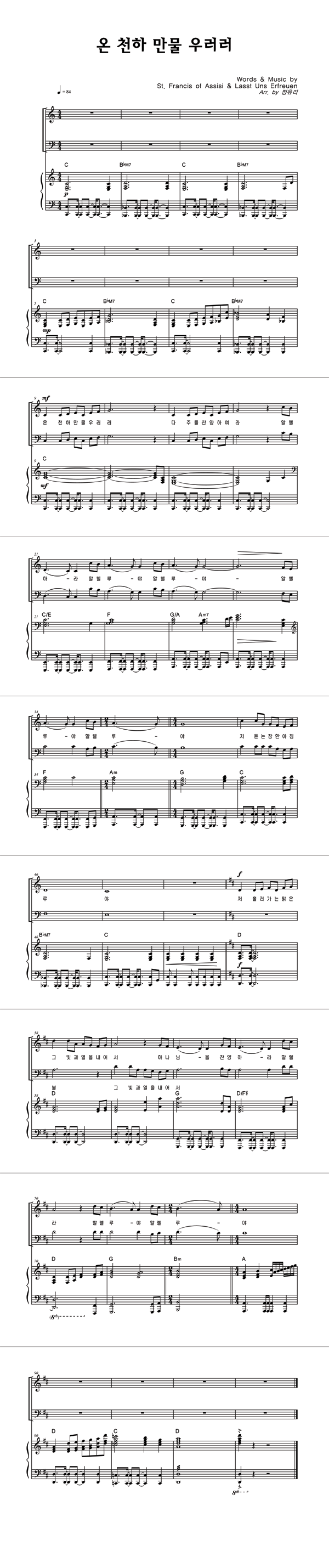 | 모두 찬양해 | 성가 2부 + 피아노 반주 |