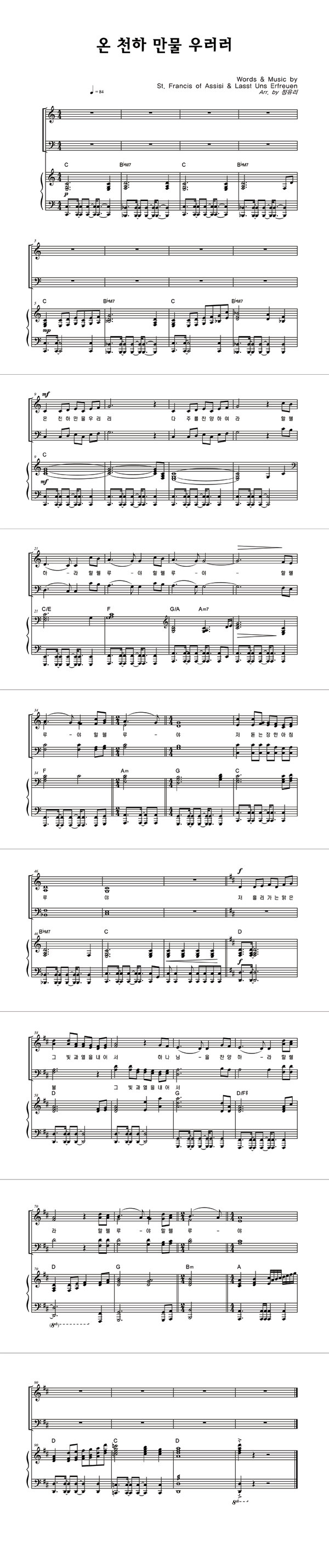 | 온 천하 만물 우러러 | 성가 3부 + 피아노 반주 |