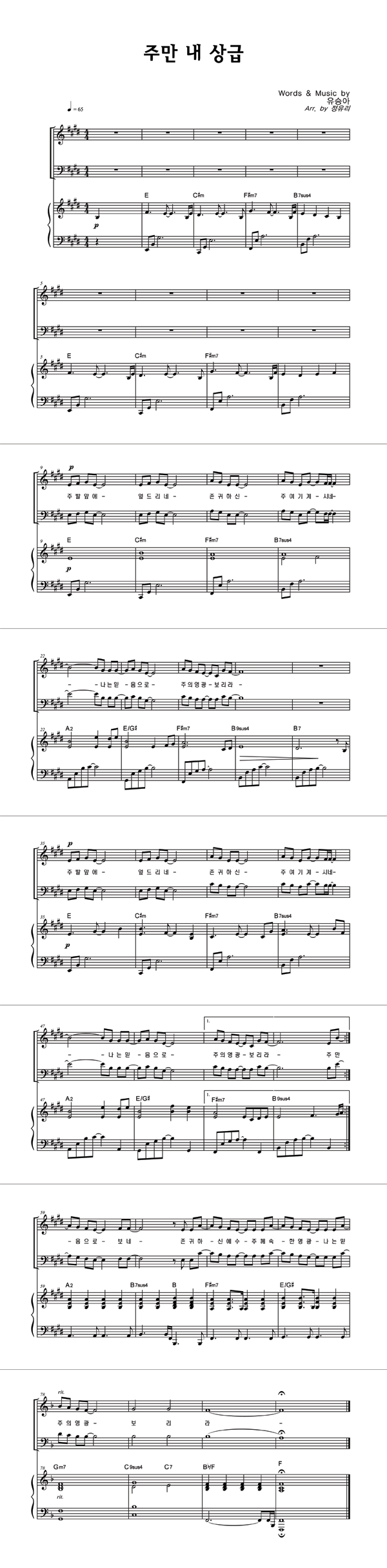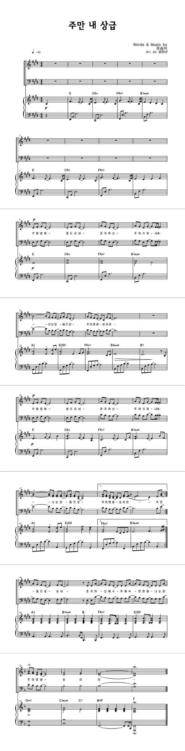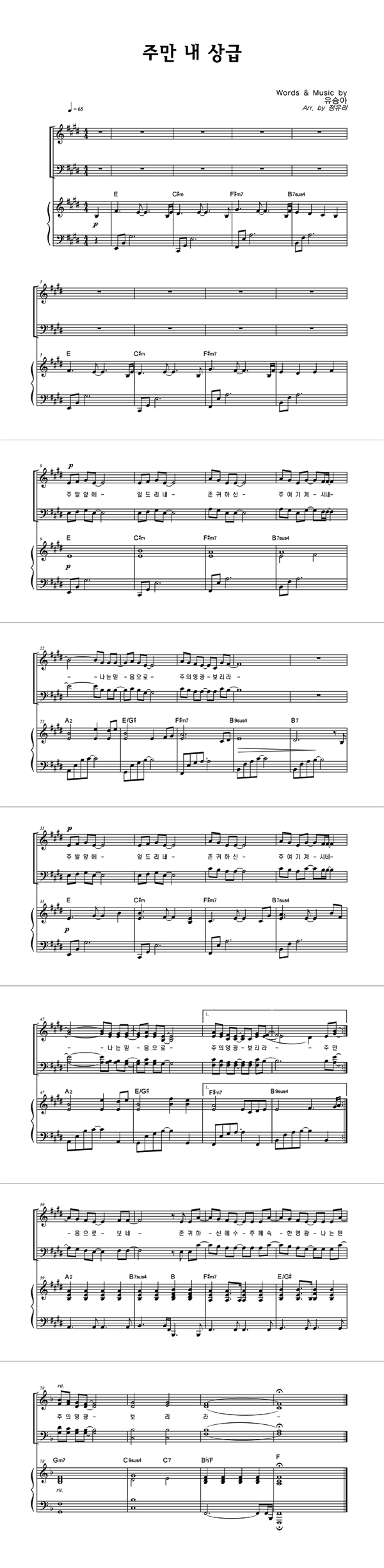 | 주만 내 상급 | 성가 3부 + 피아노 반주 |