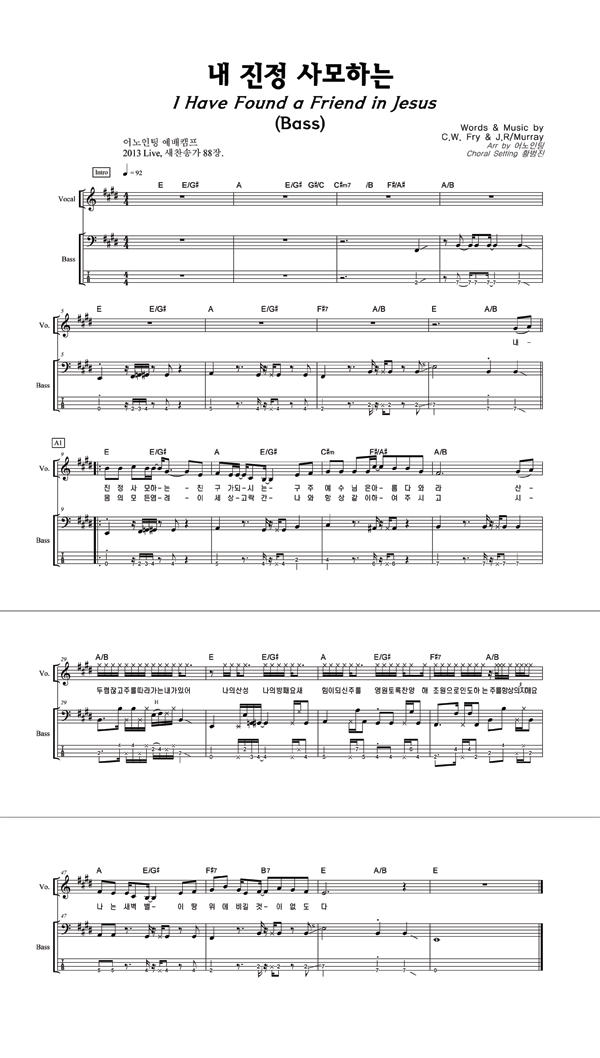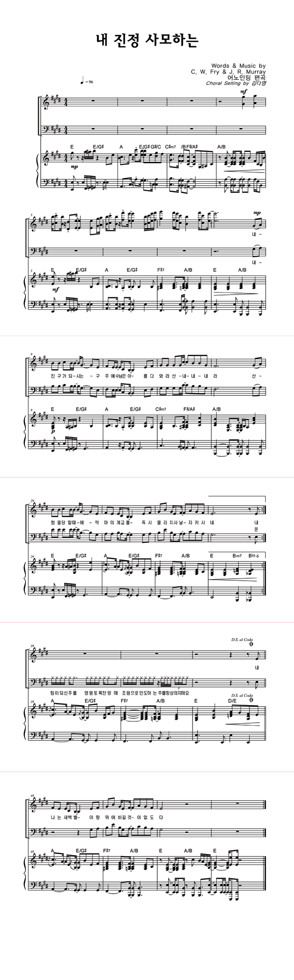 | 내 진정 사모하는 | 성가 2부 + 피아노 반주 |