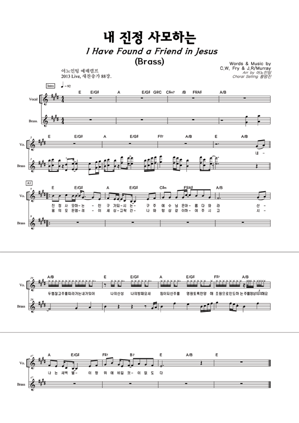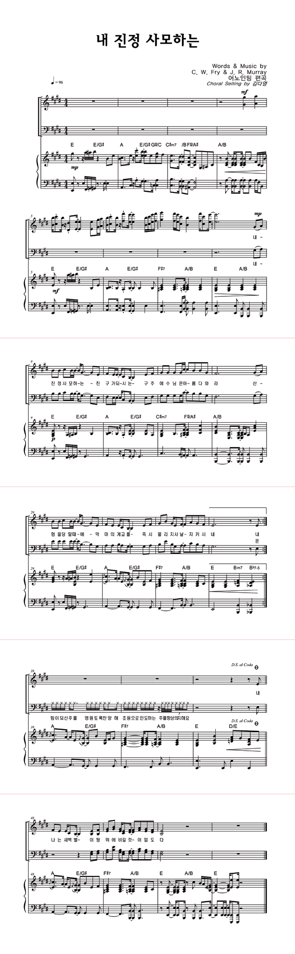 | 내 진정 사모하는 | 성가 3부 + 피아노 반주 |