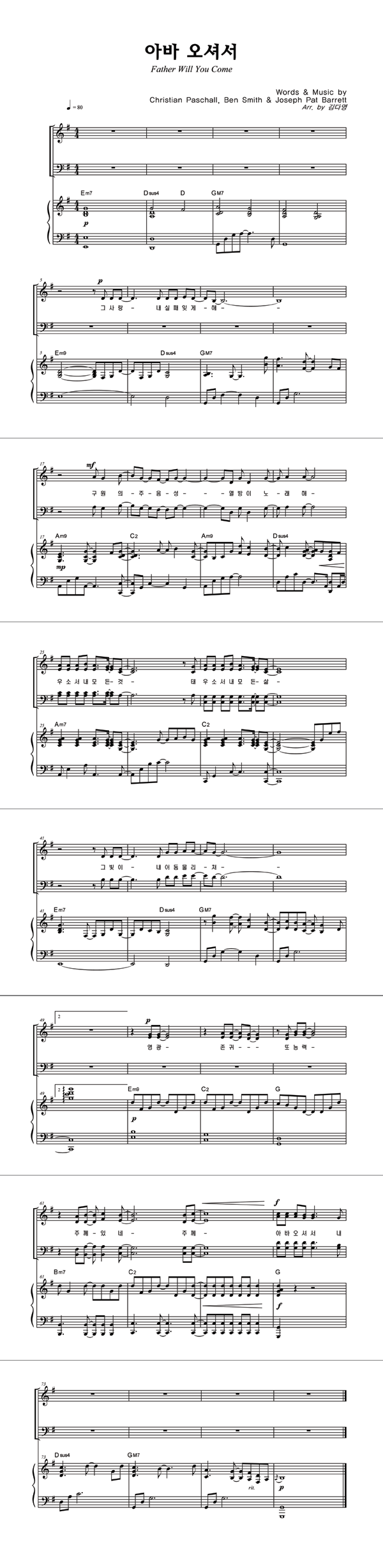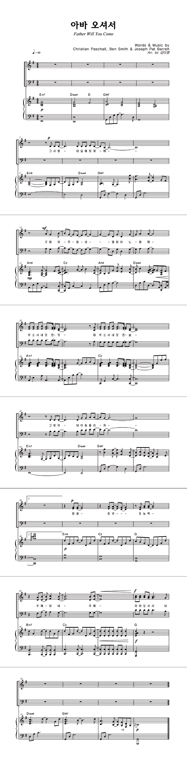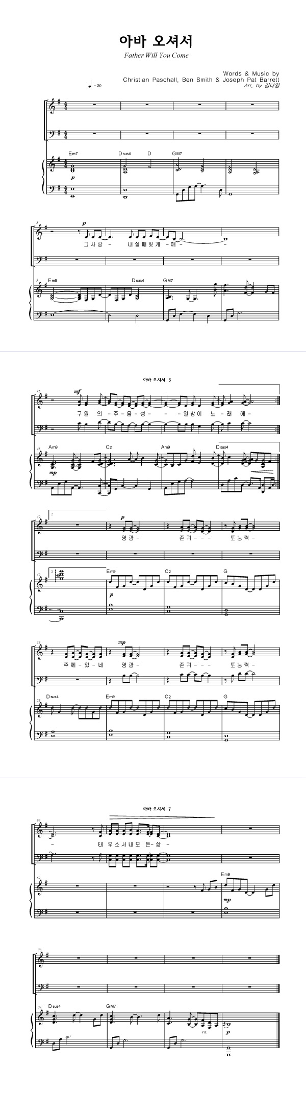 | 아바 오셔서 | 성가 3부 + 피아노 반주 |