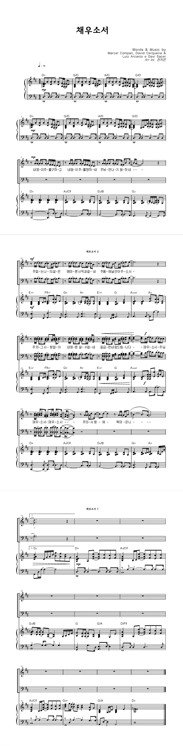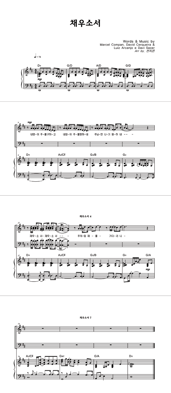 | 채우소서 | 성가 3부 + 피아노 반주 |