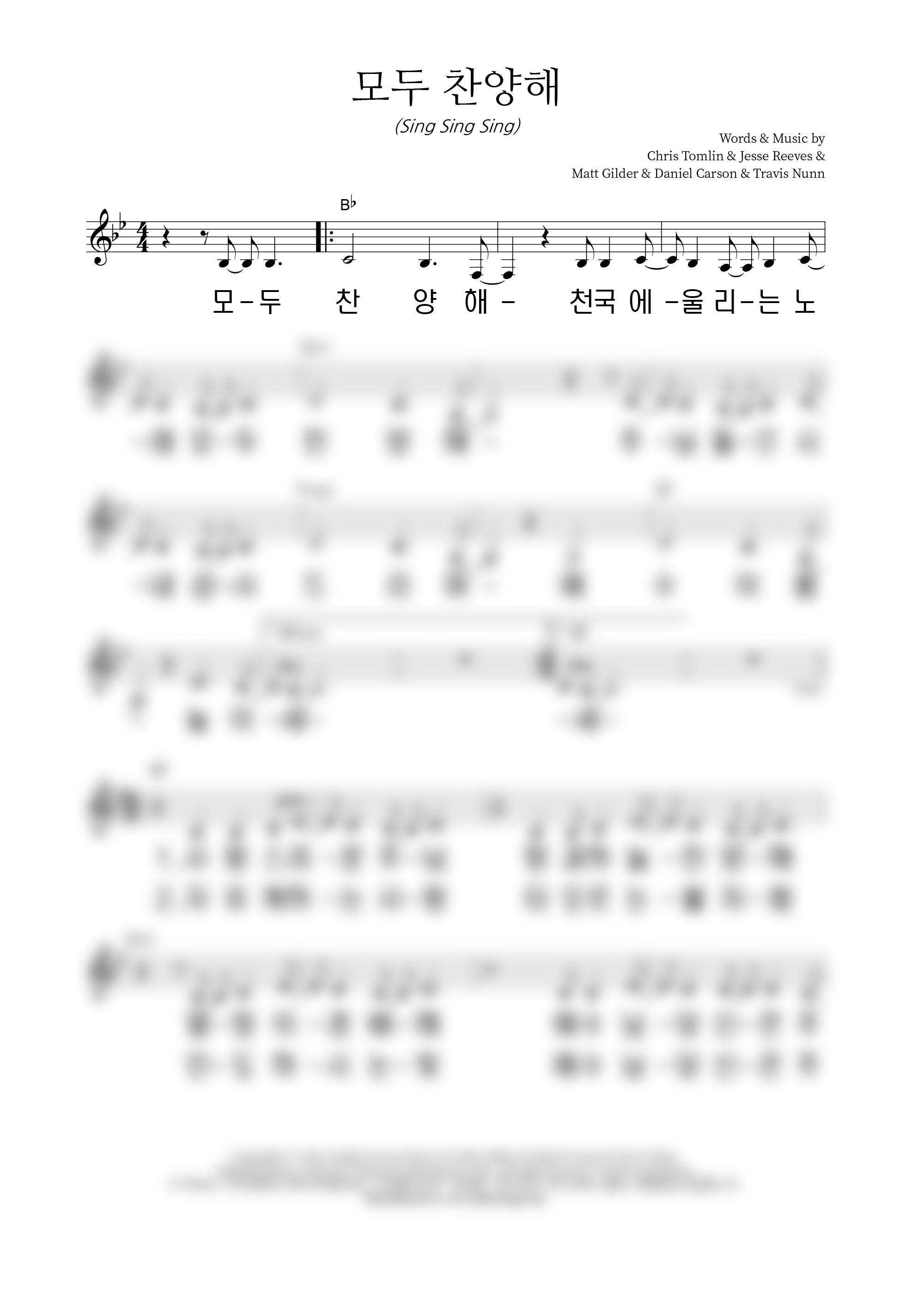 | 모두 찬양해 | 성가 4부 + 피아노 반주 |
