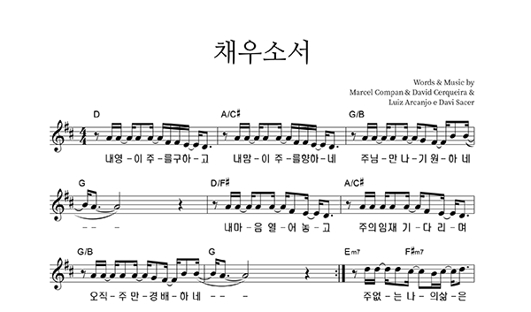 | 채우소서 | 성가 2부 + 피아노 반주 |