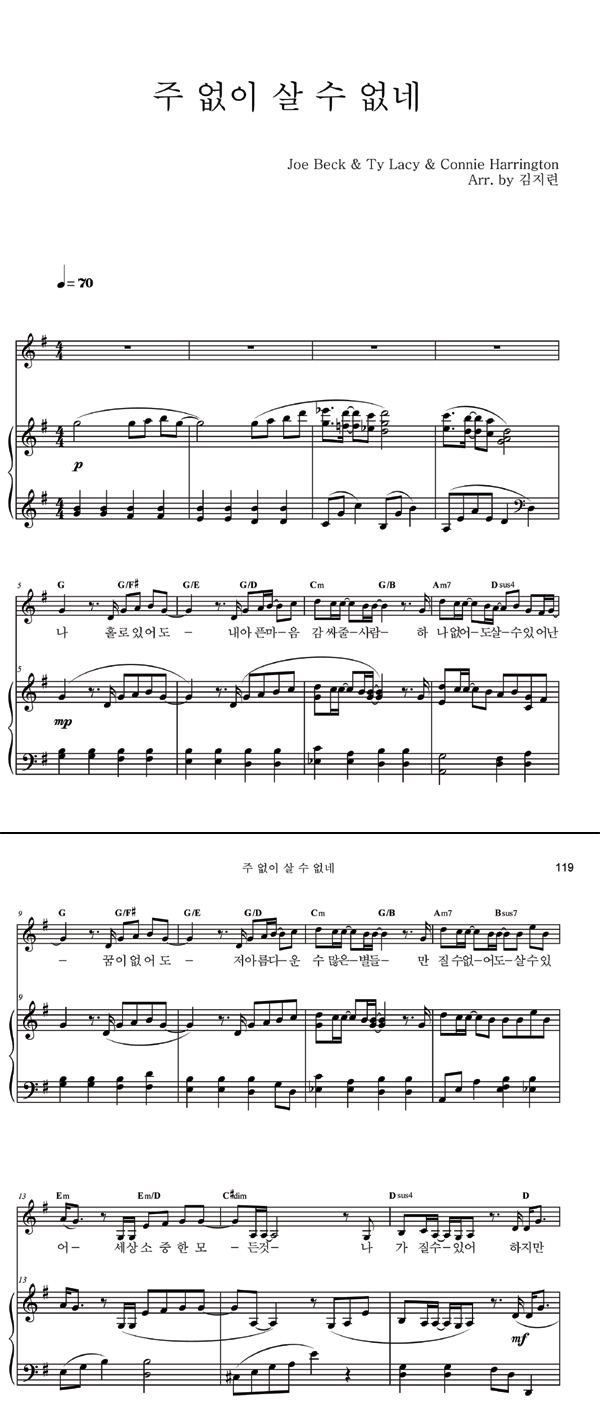 | 주 없이 살 수 없네 | 성가 3부 + 피아노 반주 |