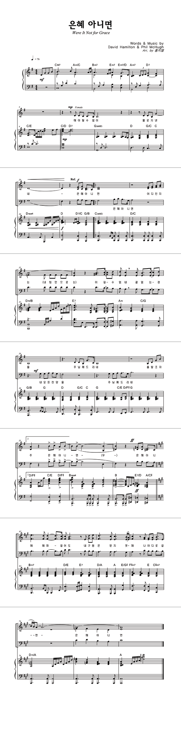 | 은혜 아니면 | 성가 4부 + 피아노 반주 |