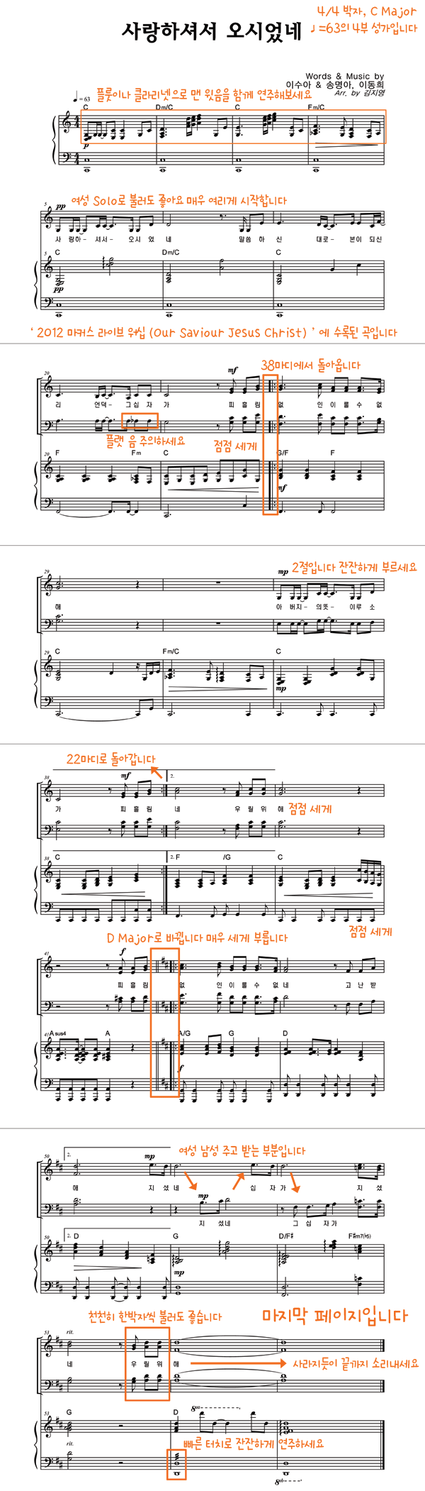 | 사랑하셔서 오시었네 | 성가 2부 + 피아노 반주 |