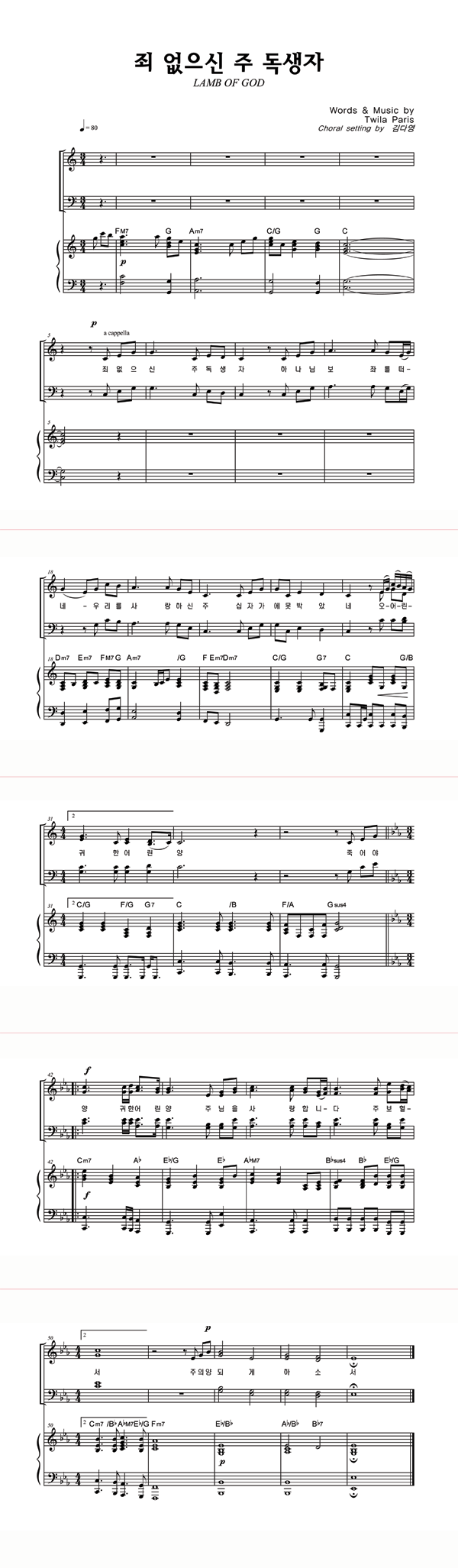 | 죄 없으신 주 독생자 | 성가 4부 + 피아노 반주 |