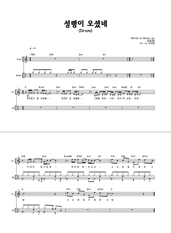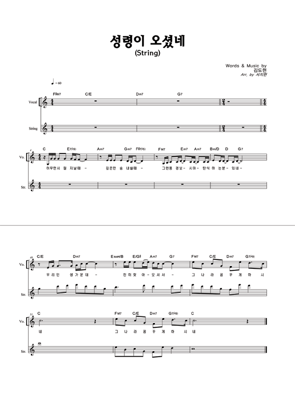 | 성령이 오셨네 | 성가 4부 + 피아노 반주 |