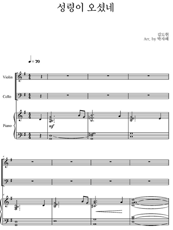 | 성령이 오셨네 | 성가 3부 + 피아노 반주 |