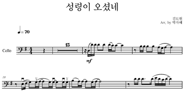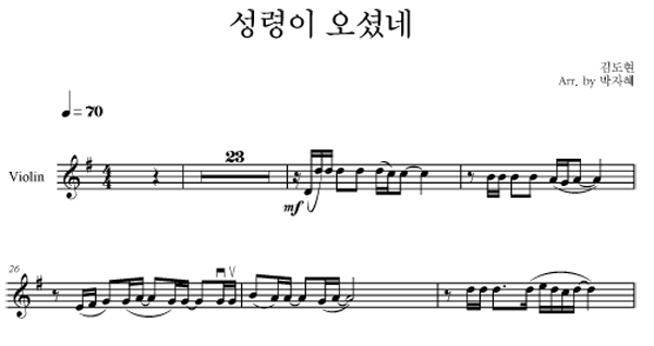 '성령이 오셨네' 의 다른 악보형식