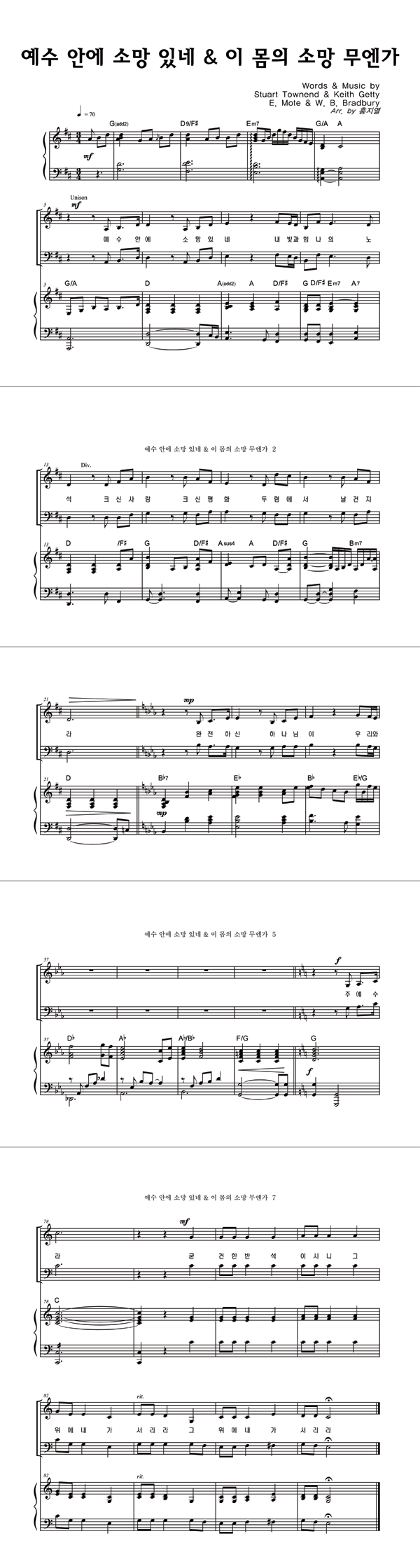 | 예수 안에 소망있네 | 성가 2부 + 피아노 반주 |