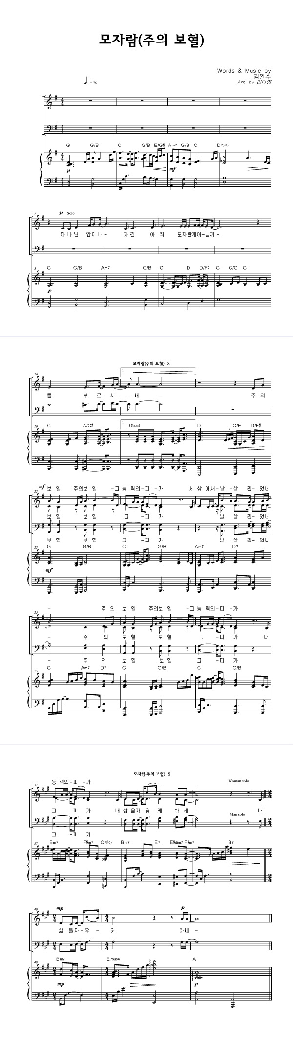 | 모자람 (주의 보혈) | 성가 3부 + 피아노 반주 |