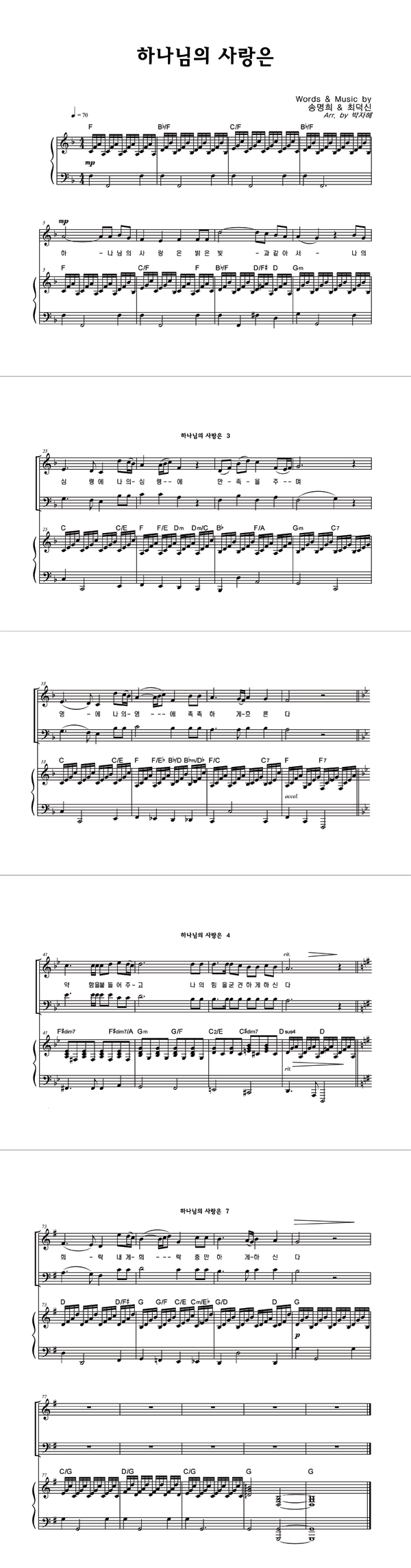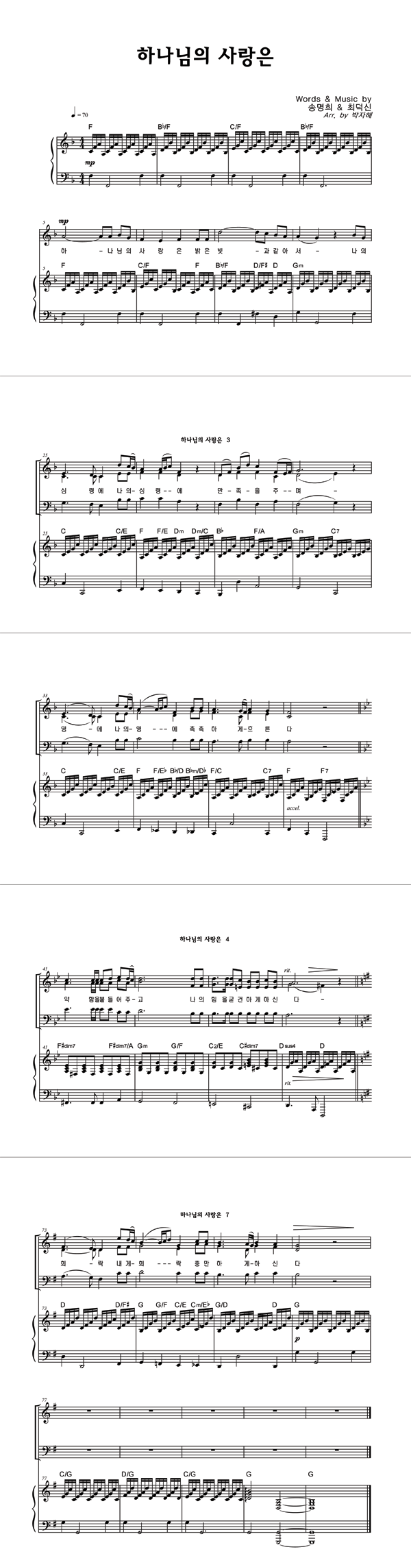 | 하나님의 사랑은 | 성가 2부 + 피아노 반주 |