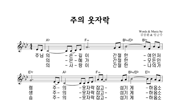 | 주의 옷자락 | 성가 2부 + 피아노 반주 |