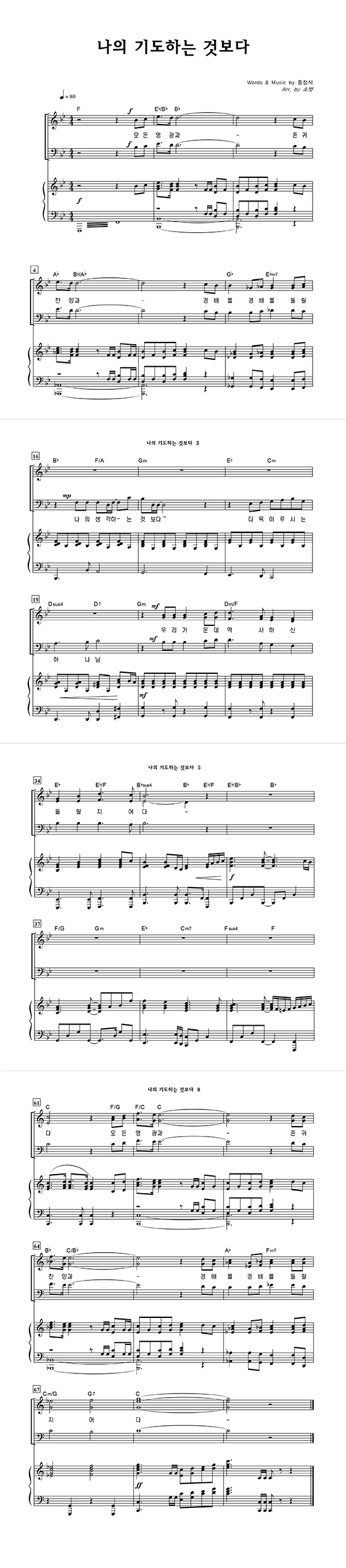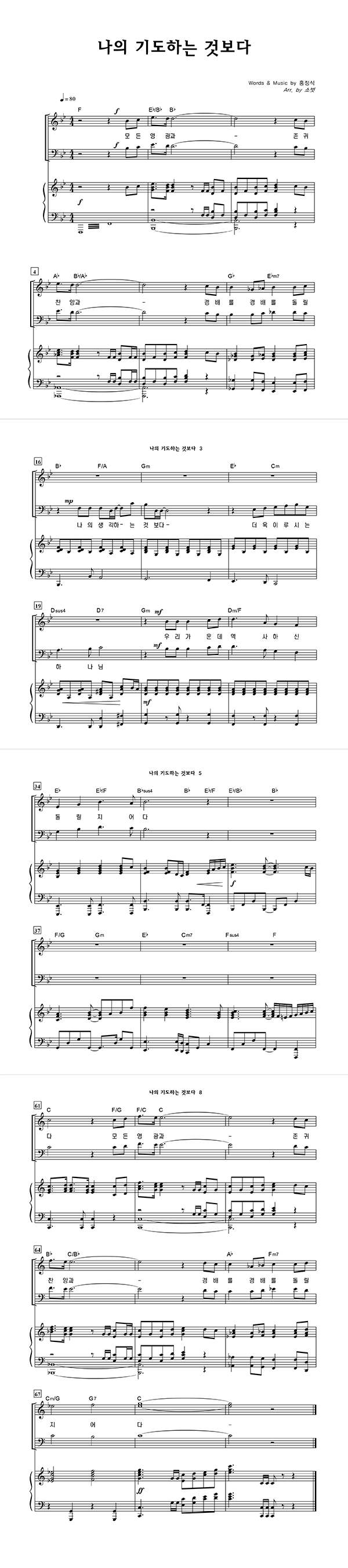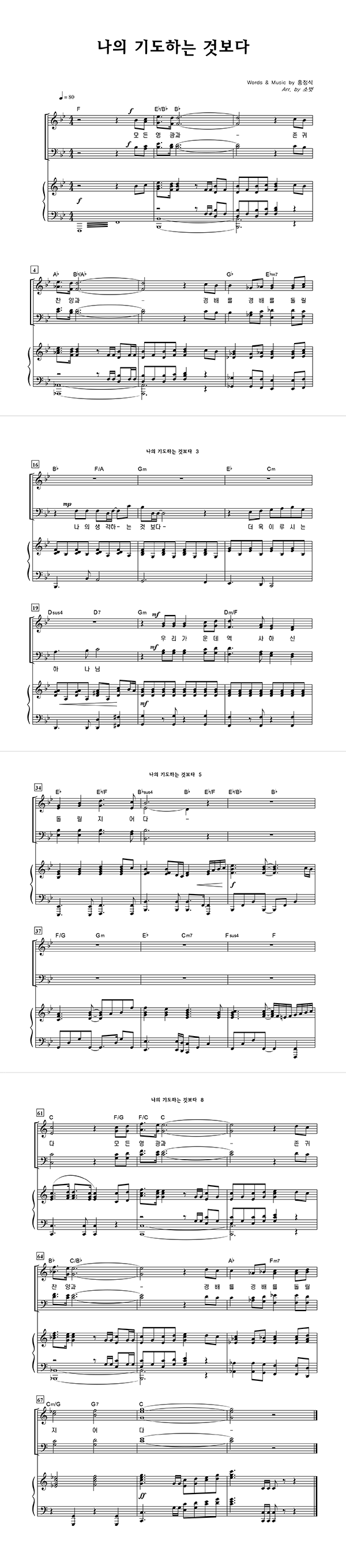 | 나의 기도하는 것보다 | 성가 3부 + 피아노 반주 |