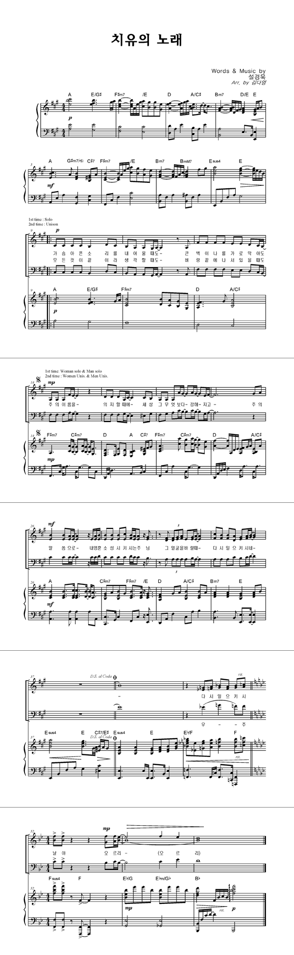 | 치유의 노래 | 성가 4부 + 피아노 반주 |