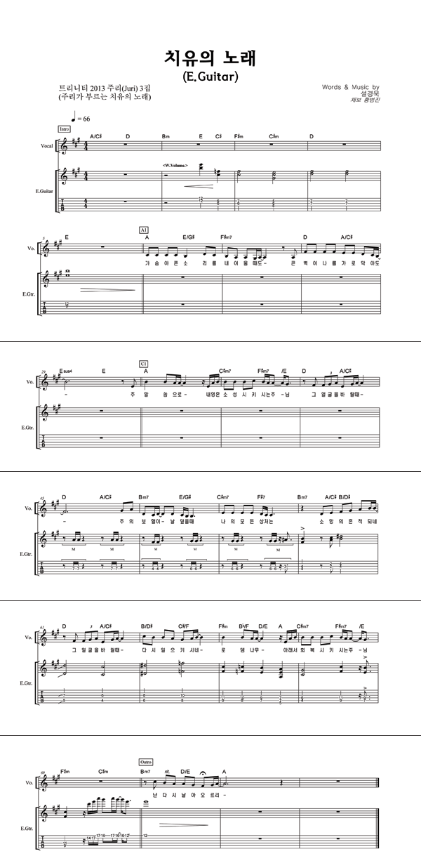 '치유의 노래' 의 다른 악보형식
