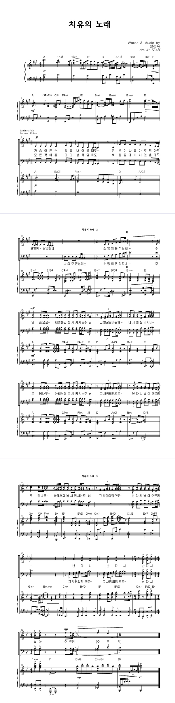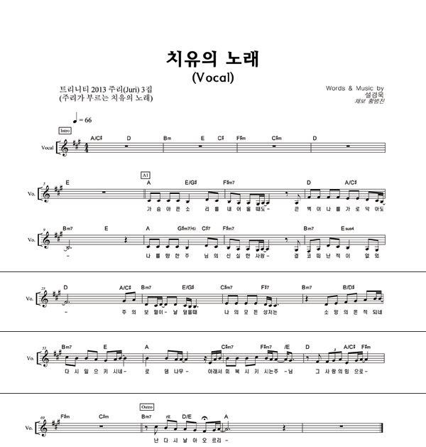 | 치유의 노래 | 성가 3부 + 피아노 반주 |