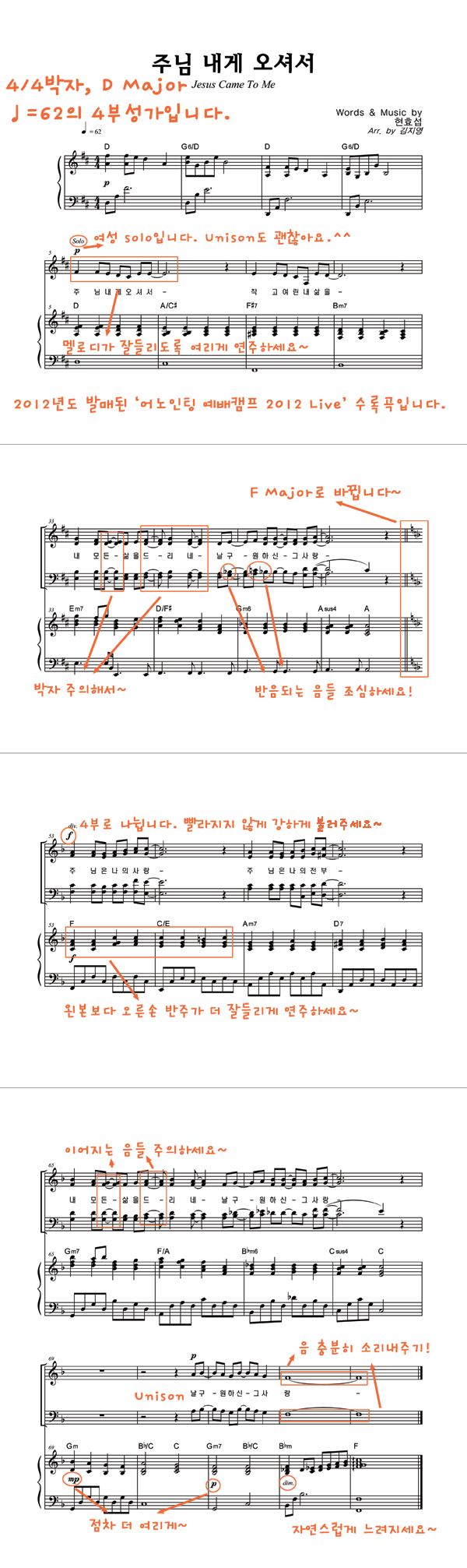 | 주님 내게 오셔서 | 성가 2부 + 피아노 반주 |