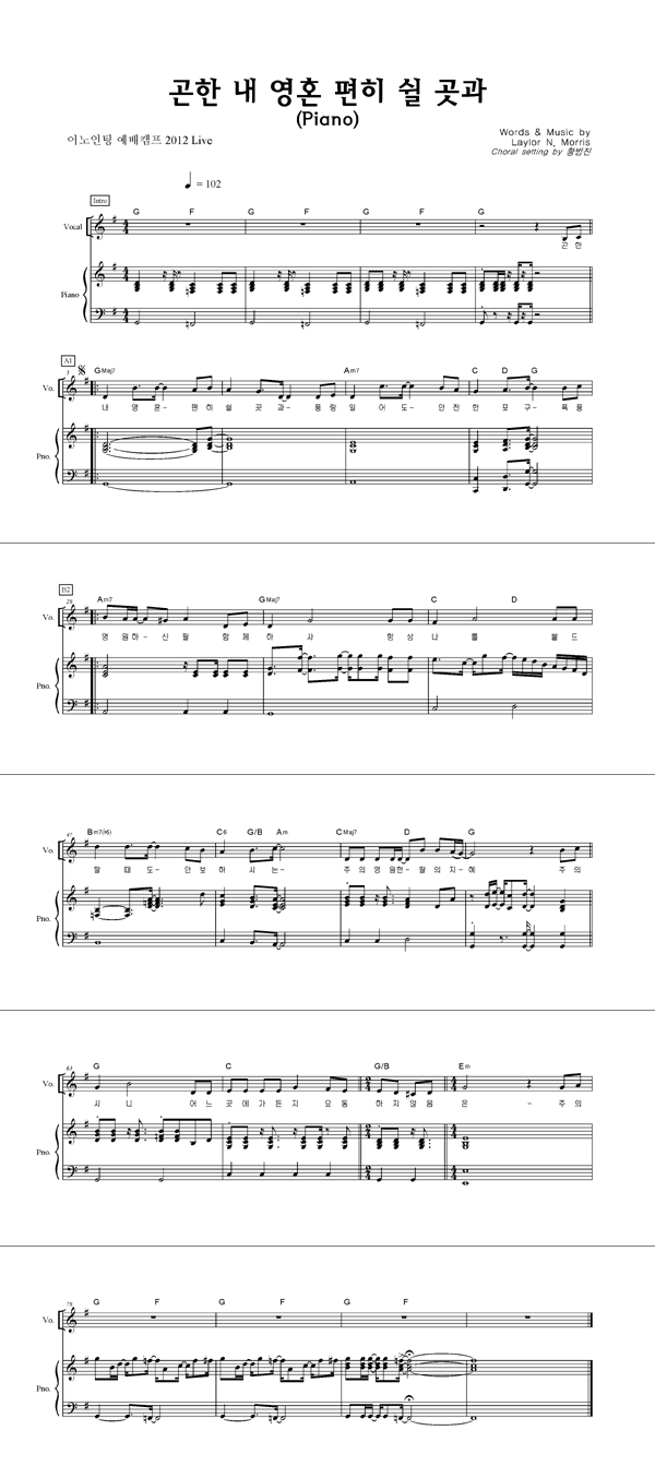 | 곤한 내 영혼 편히 쉴 곳과 | 성가 3부 + 피아노 반주 |