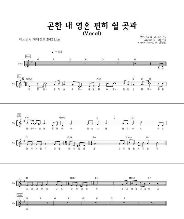| 곤한 내 영혼 편히 쉴 곳과 | 성가 3부 + 피아노 반주 |