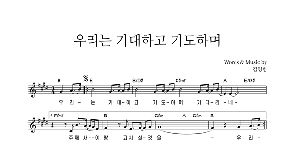 '우리는 기대하고 기도하며 기다리네' 의 다른 악보형식