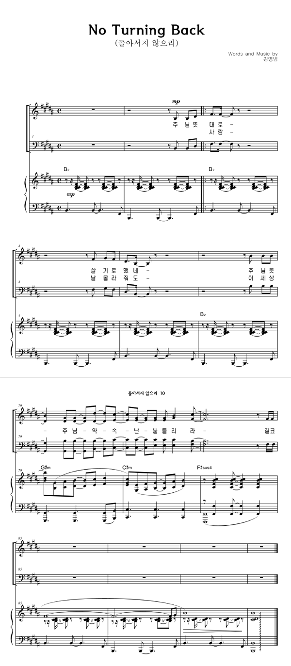| 돌아서지 않으리 | 성가 3부 + 피아노 반주 |