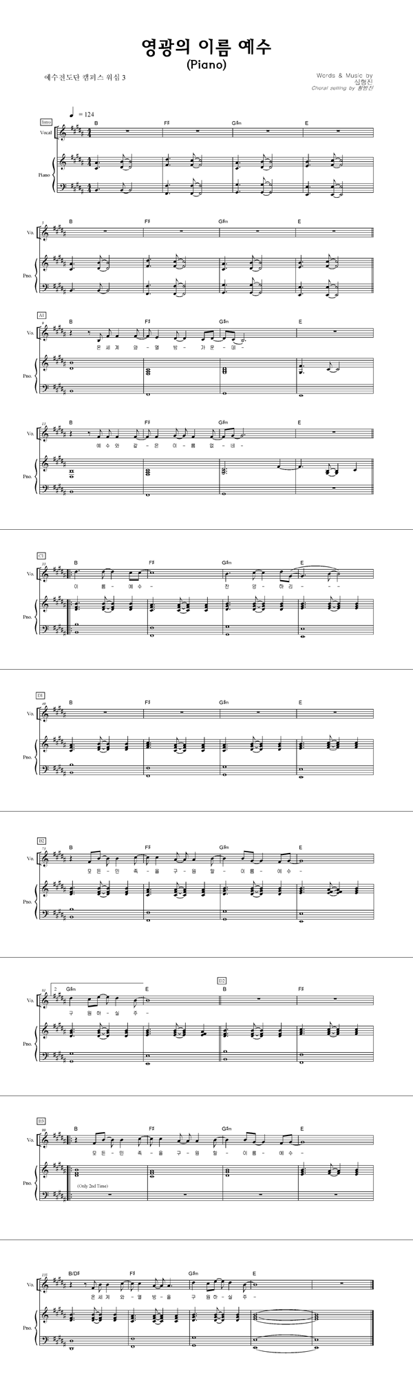 '예수전도단 캠퍼스 워십 3집 - 영광의 이름 예수' 의 다른 악보