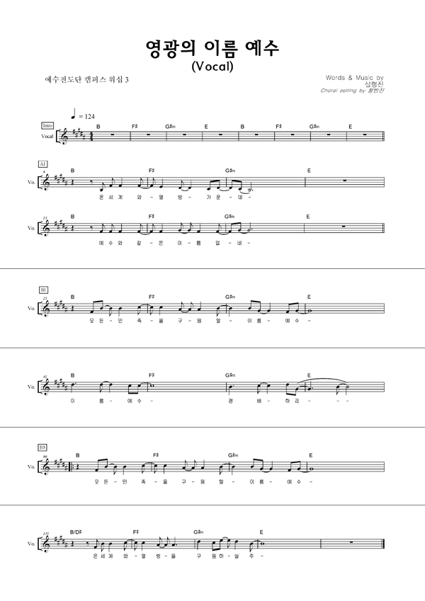 '예수전도단 캠퍼스 워십 3집 - 영광의 이름 예수' 의 다른 악보