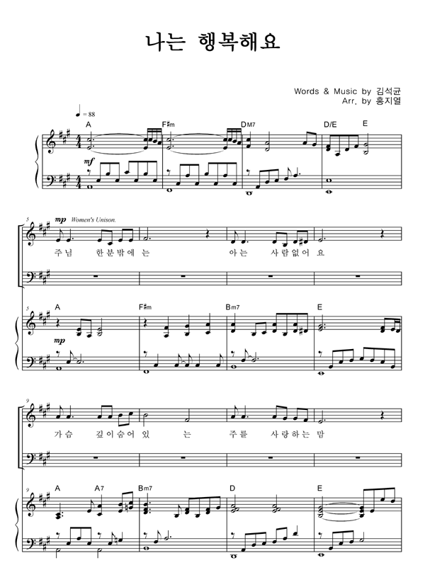 | 나는 행복해요 | 성가 4부 + 피아노 반주 |
