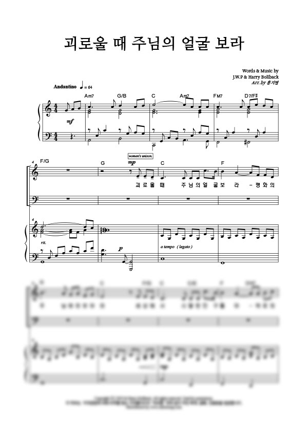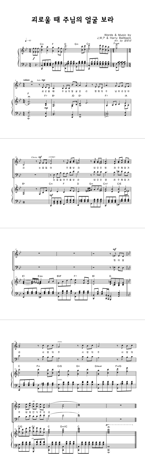 | 괴로울 때 주님의 얼굴 보라 | 성가 3부 + 피아노 반주 |