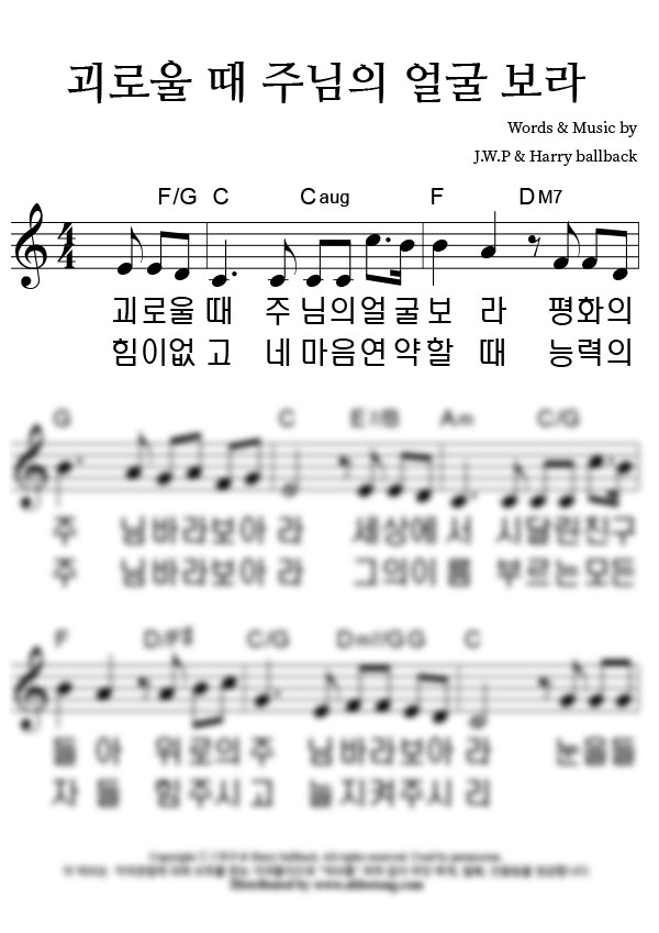 | 괴로울 때 주님의 얼굴 보라 | 성가 4부 + 피아노 반주 |