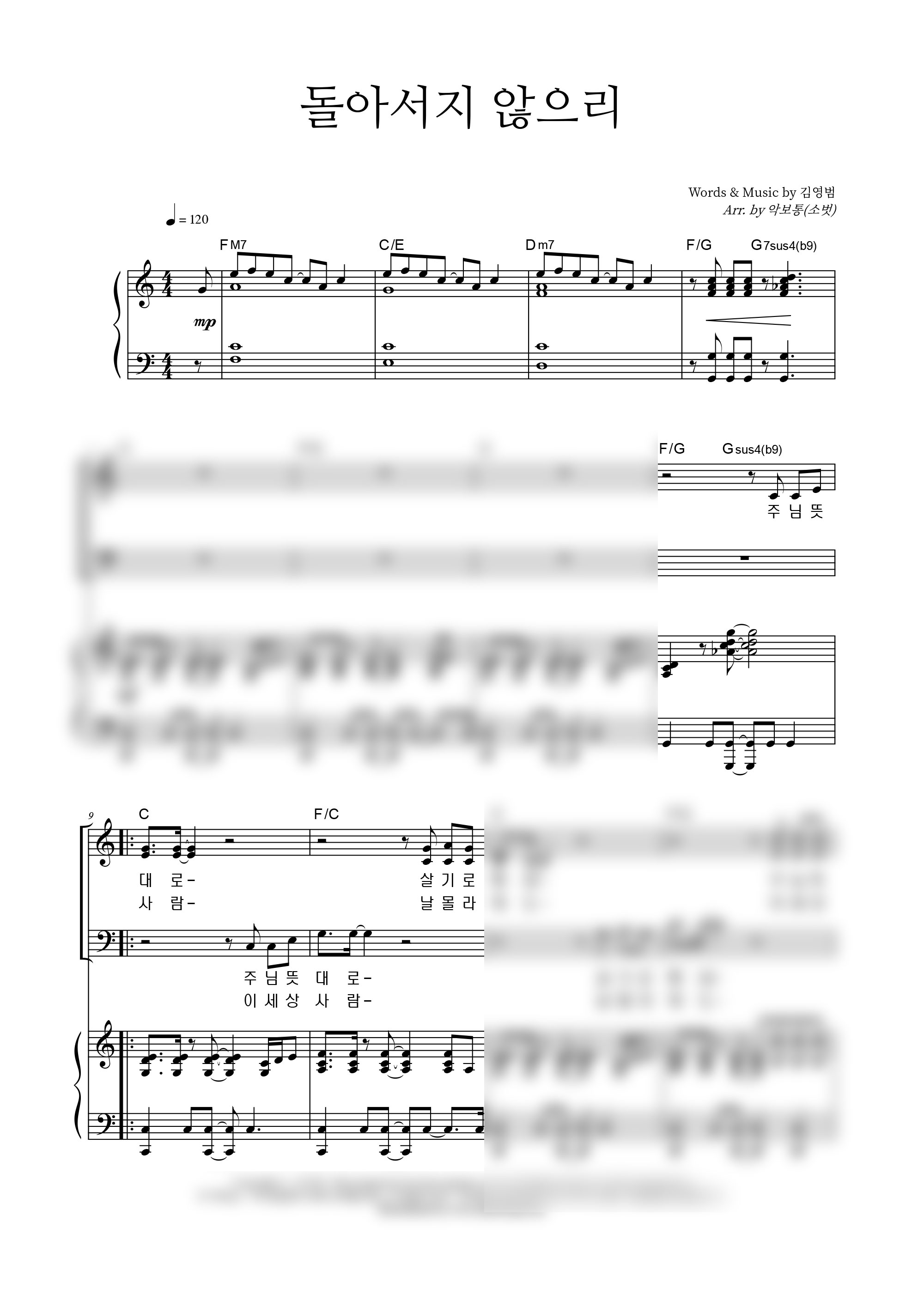 | 돌아서지 않으리 | 성가 3부 + 피아노 반주 |