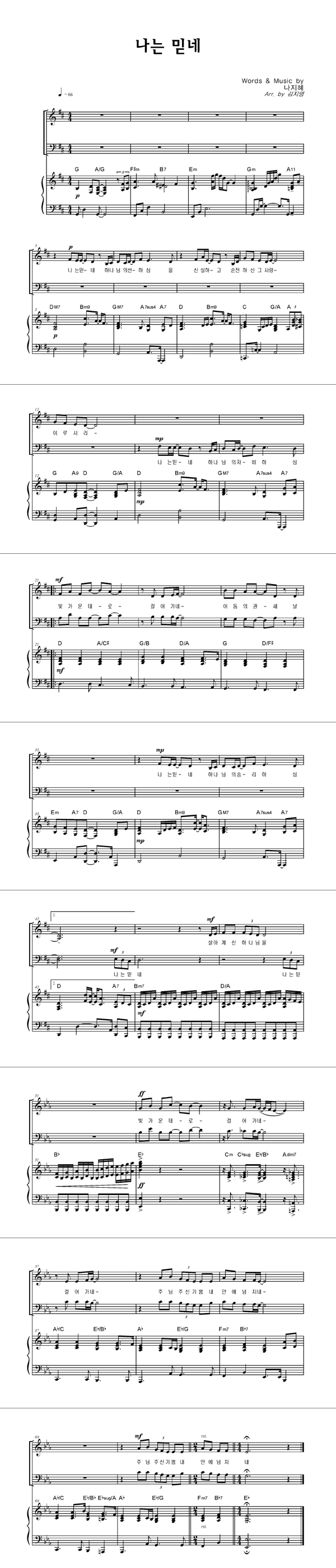 | 나는 믿네 | 성가 2부 + 피아노 반주 |