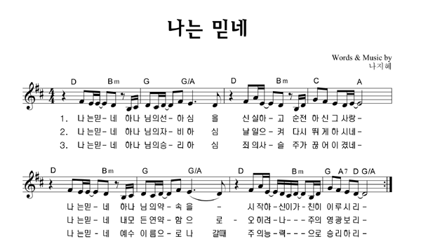 | 나는 믿네 큰글씨 | 성가 4부 + 피아노 반주 |