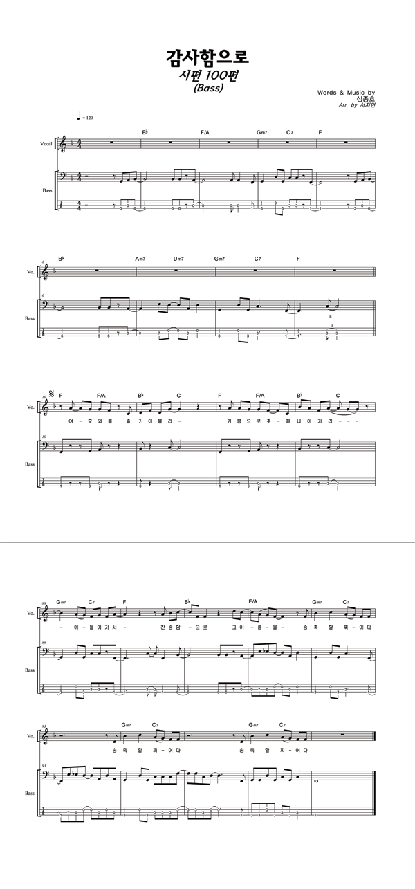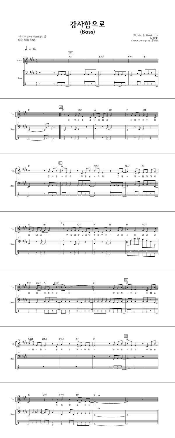 | 감사함으로 | 성가 2부 + 피아노 반주 |