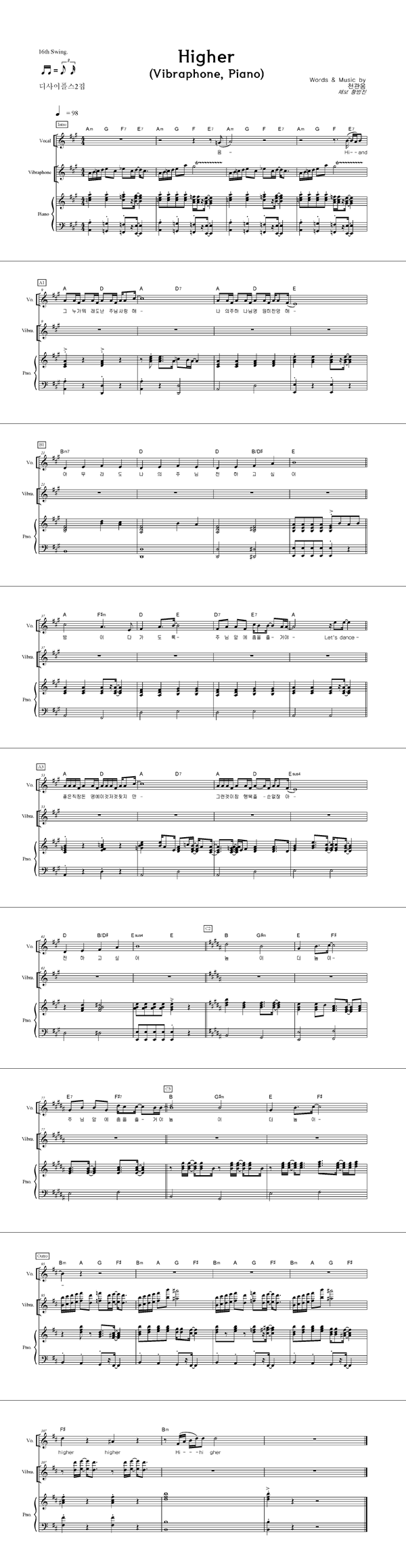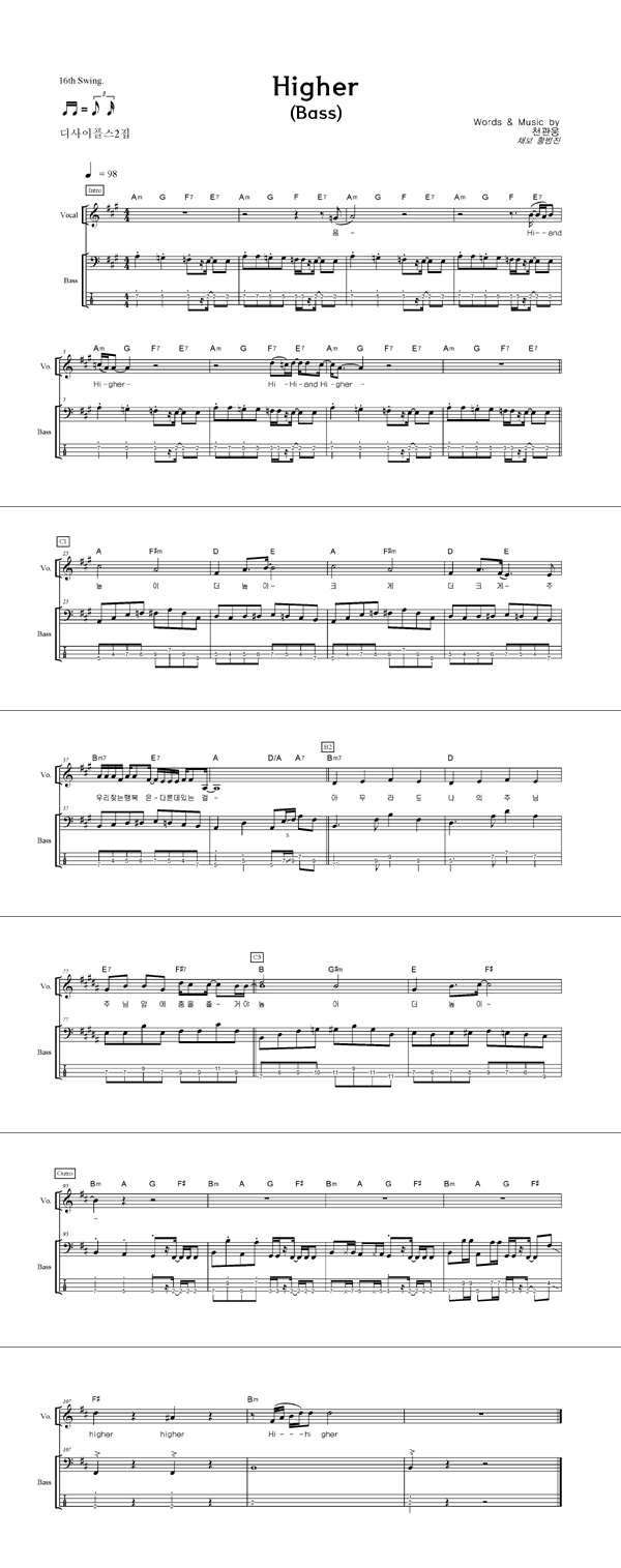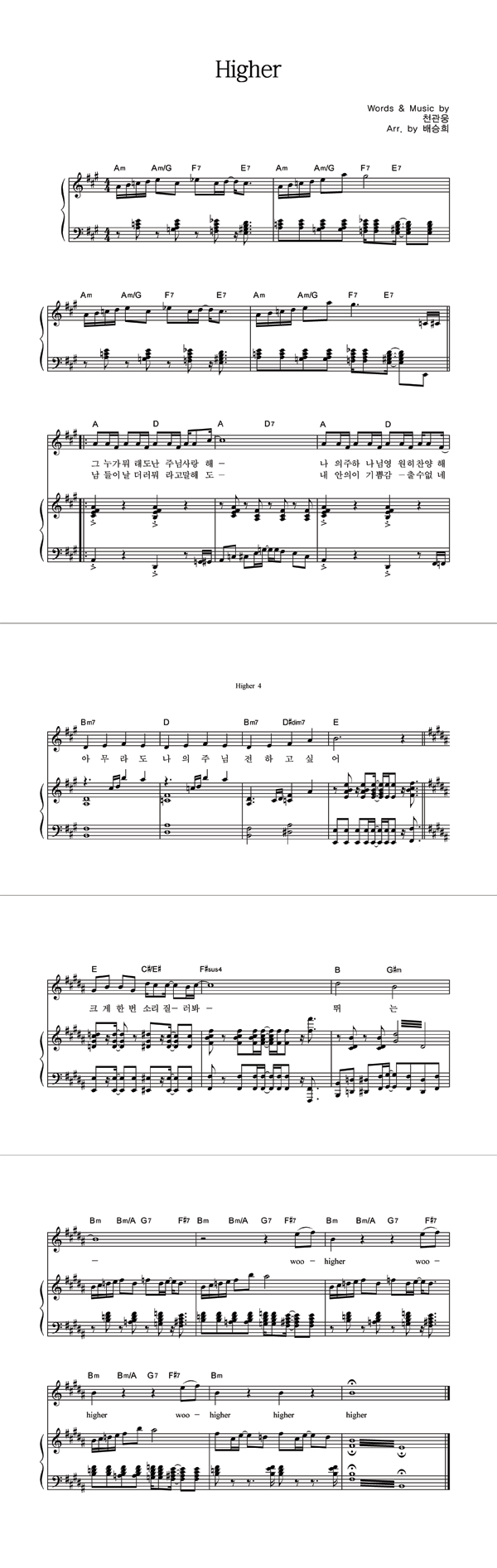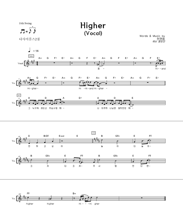 'Higher' 의 다른 악보형식