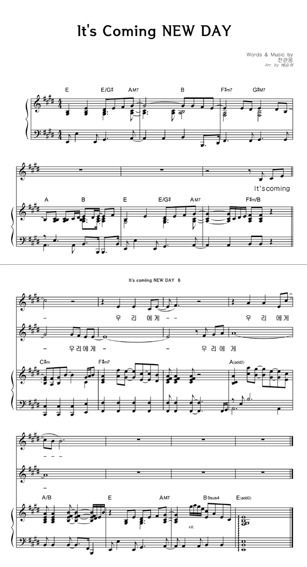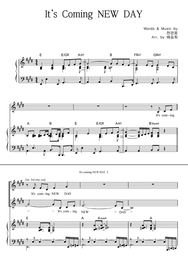 | It's Coming NEW DAY | 성가 2부 + 피아노 반주 |