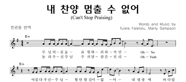| 내 찬양 멈출 수 없어 | 단선 |