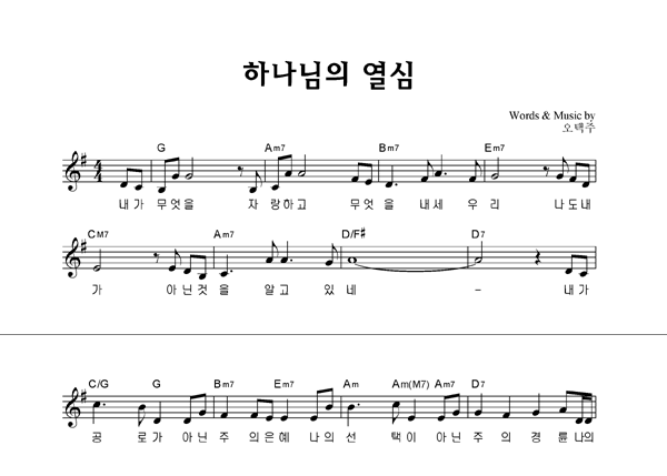 | 하나님의 열심 | 성가 4부 + 피아노 반주 |