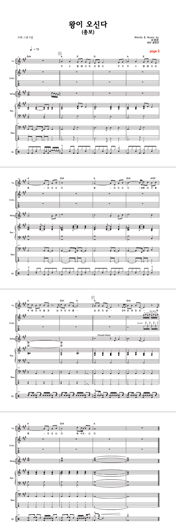| 왕이 오신다 | 성가 2부 + 피아노 반주 |