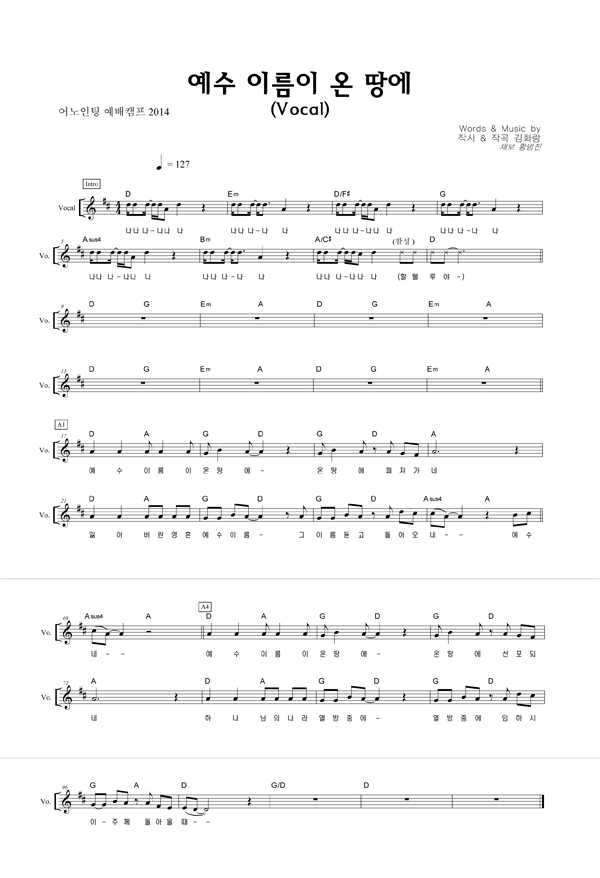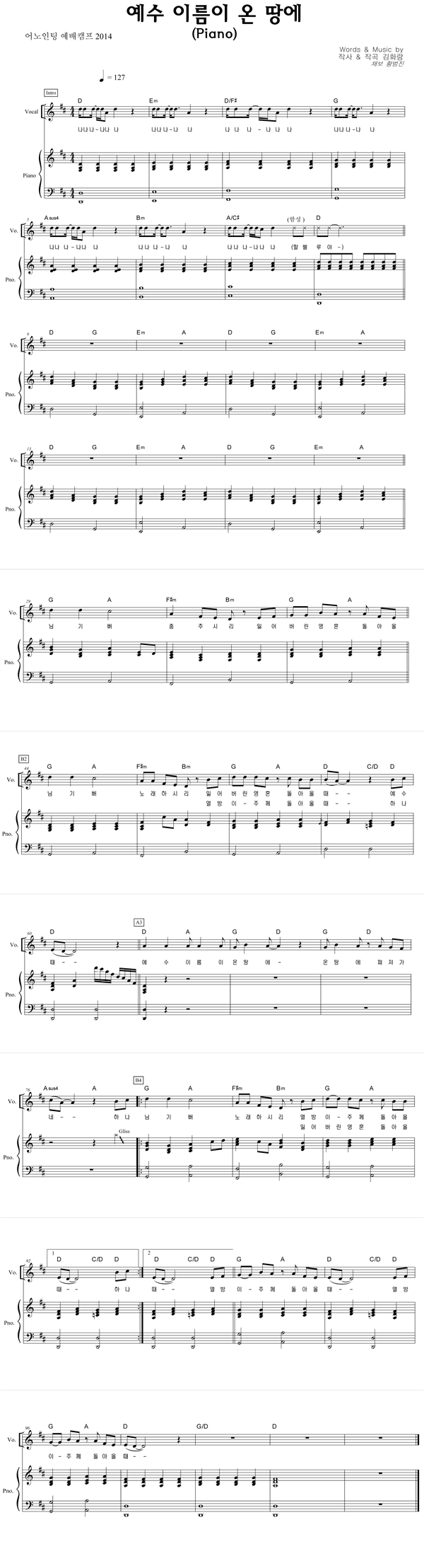 '예수 이름이 온 땅에' 의 다른 악보형식