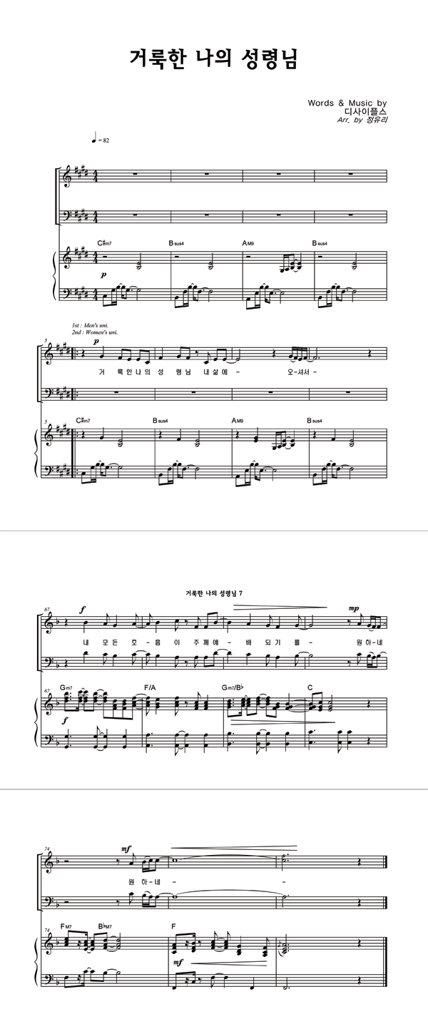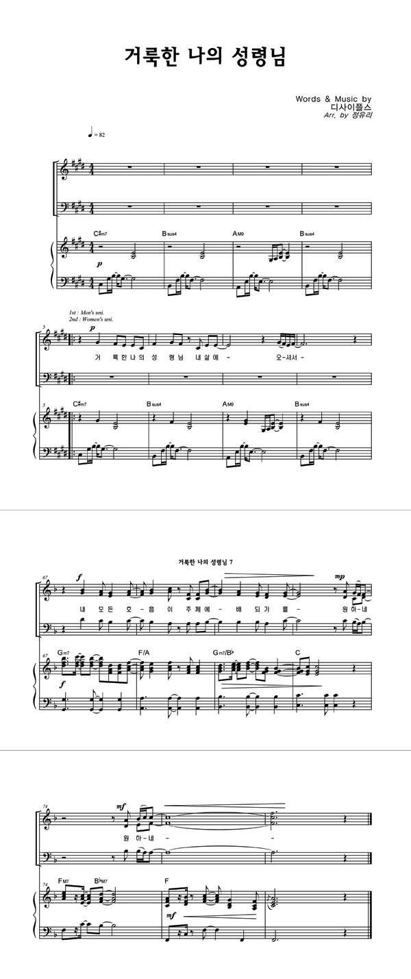| 거룩한 나의 성령님 | 성가 3부 + 피아노 반주 |