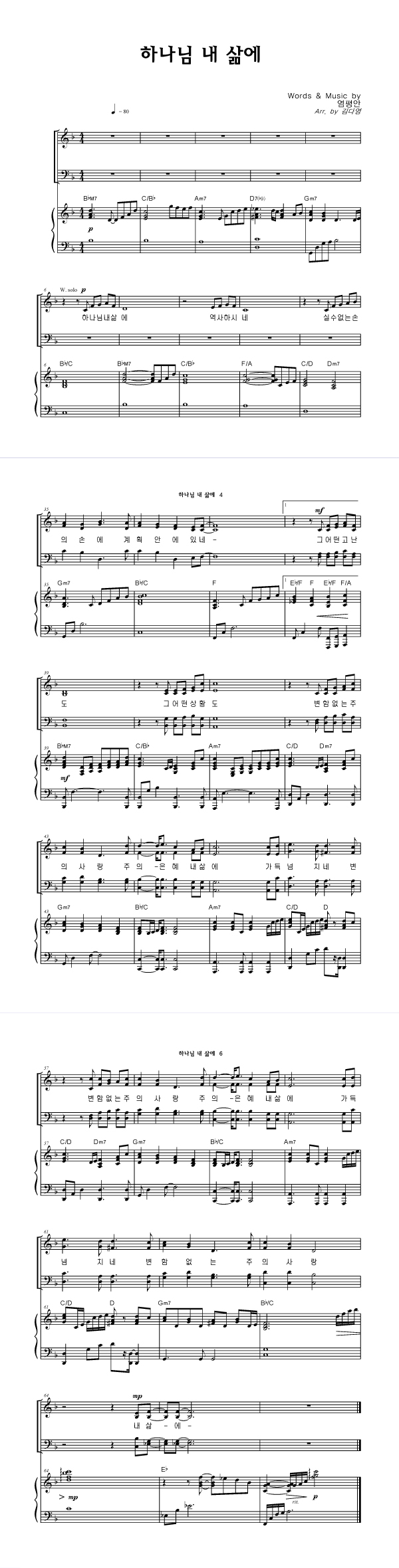 | 하나님 내 삶에 | 성가 2부 + 피아노 반주 |