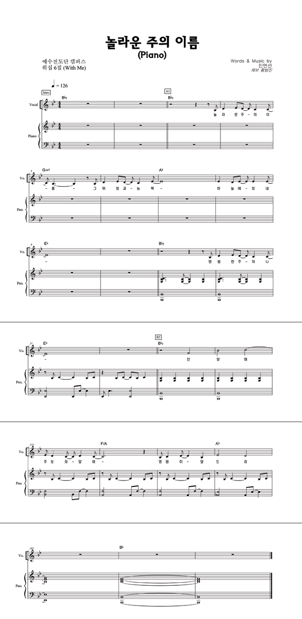 | 거룩하고 아름다운 | 성가 2부 + 피아노 반주 |
