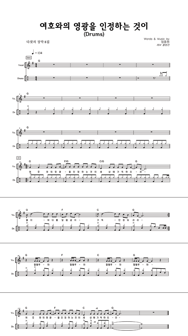 | 거룩하신 주님 만군의 여호와 | 단선 |